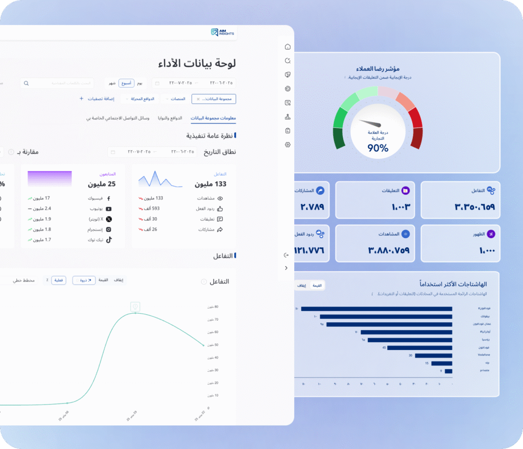 فسر تفاعلات العلامة التجارية بـ 8 لغات مختلفة بما في ذلك 12 لهجة عربية مختلفة.